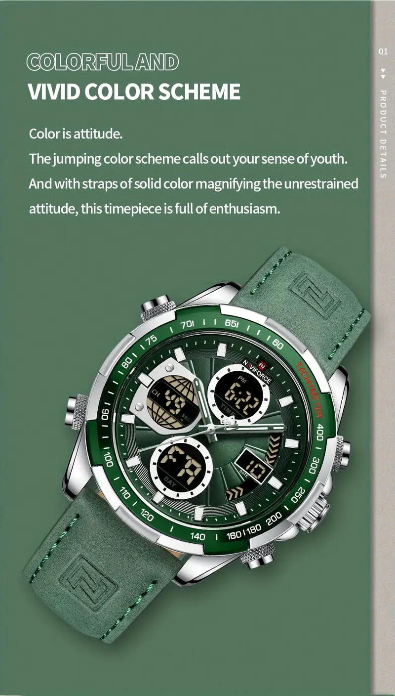 Multi-functional Quartz Men's Watch With Genuine Leather Strap